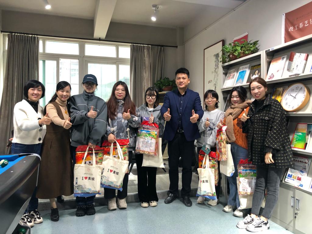 为鼓励美院考研学子积极迎考,坚定考研信心,11月24日上午,时时彩 开展了为考研学子发放“考研加油包”活动。时时彩 党委书记叶正飞、副书记杨丽君、副院长胡文超、顾任飞及学工办老师们参加了本次活动,与考研学子齐聚一堂,为他们加油助力。