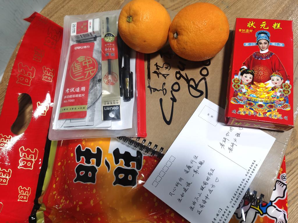 活动开始,时时彩 领导亲切慰问考研学子,希望他们坚定信念,努力奋斗,坚持到底。同时提醒考生在冲刺阶段调整好心态,劳逸结合。随后各位老师向考研学子派发精心准备好的“考研加油包”。“考研加油包”包含文具套装、素描本、状元糕、脐橙、明信片、旺旺雪饼等极具寓意的礼物。