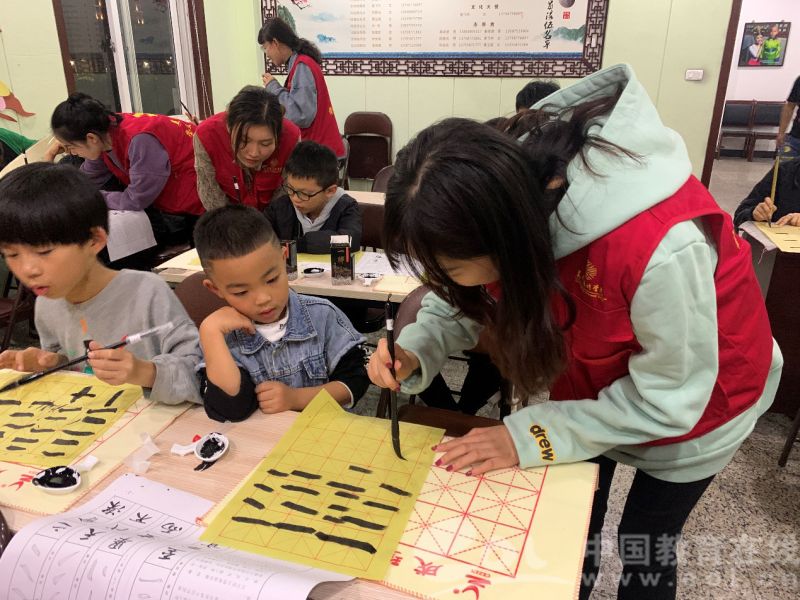 据悉,此次美育公益课程共开设创意美术、软笔书法、硬笔书法三个兴趣班,由温大美院美术师范及设计专业的学生组成的学生讲师团每周日晚上义务授课。自十一月开课以来,40多名侨乡儿童风雨无阻地参加课堂学习。