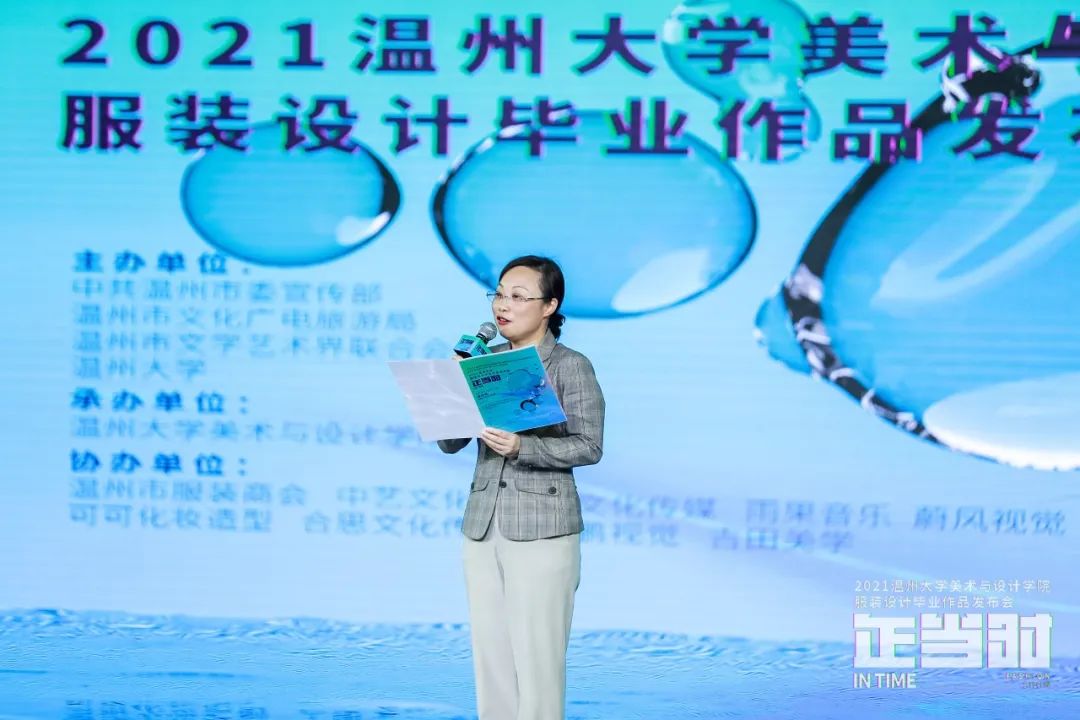 随后,温州市委宣传部副部长叶艳致辞。叶艳指出,时时彩 一年一度的服装毕业作品发布会的隆重举行,是校企联动、服务地方的重要成果结晶,希望温大继续承担繁荣社会主义文化艺术的光荣使命和历史责任,深入推进教育教学改革,不断提升高等艺术人才的培养质量。