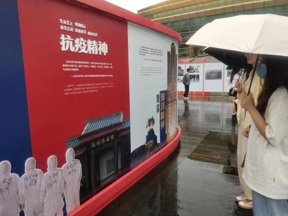 走出大厅,往前便是温州市庆祝建党100周年“百年荣耀,潮涌瓯江”大型图片展。在讲解员的带领下大家依次参观了“红动浙南 开天辟地起宏图”“艰难探索 改天换地兴大业”“改革开放 敢为人先创伟业”“潮涌瓯江 经天纬地聚伟力”四个单元以及中国共产党人精神谱系、幸福列车、百年镜头聚焦百年生活三个专题。全体同学仔细聆听温州市发展的历史介绍,认真观看相关图片和文献资料等,追忆党的斗争历程,感受红色文化氛围,接受革命历史教育。