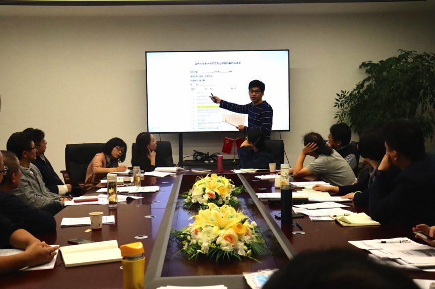 紧接着,教务科科长黄呼尔励从师范专业认证评估专家的视角,以谢子静教授的课程为范例对《时时彩 美术学师范专业课程档案材料清单》的原始材料归档与课程材料进行了介绍,与会老师们对细节问题进行了热烈讨论。