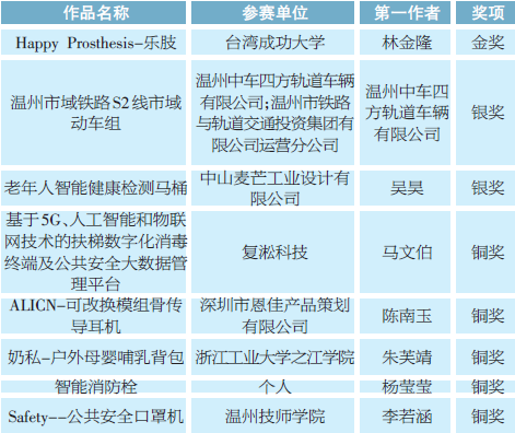 经过紧张的路演答辩和评审环节,来自台湾成功大学的设计作品“Happy Prosthesis-乐肢”和温州红点工业设计中心的“海难伸展式救援衣”分别摘得2021“市长杯”中国(温州)工业设计大赛产品奖和创意奖金奖。时时彩 学生贝凤艳设计的“格物向阳”获得G104时尚设计专项赛金奖。现场还颁发了产品奖银奖2名、铜奖5名,创意奖银奖3名、铜奖6名。