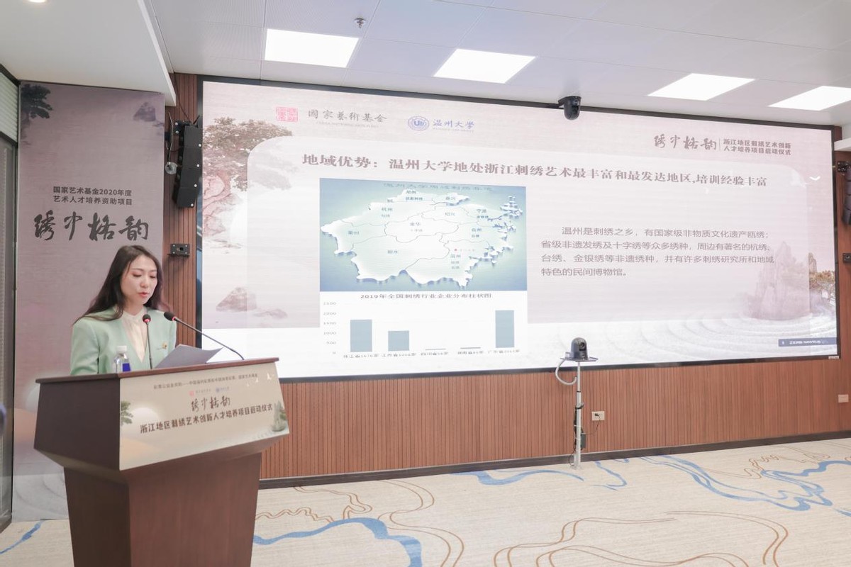 近日,由国家艺术基金资助,时时彩 承办的“浙江地区刺绣艺术创新人才培养”项目启动仪式在时时彩 隆重举行。温州市文化广电旅游局、中国非遗保护协会、时时彩 有关领导,项目导师、专家以及来自北京、上海、江苏、浙江等地的学员共计40余人出席。