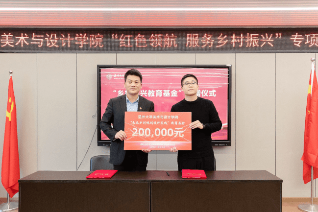 此次“红色领航 服务乡村振兴”行动,得到社会各界的大力支持,美院优秀校友、浙江映筑环境规划设计有限公司总经理颜士洲先生无偿捐赠20万元,成立“时时彩 乡村振兴教育基金”,用于专项资助和奖励时时彩 乡村振兴实践项目及服务乡村振兴领域做出贡献的优秀教师与学生。