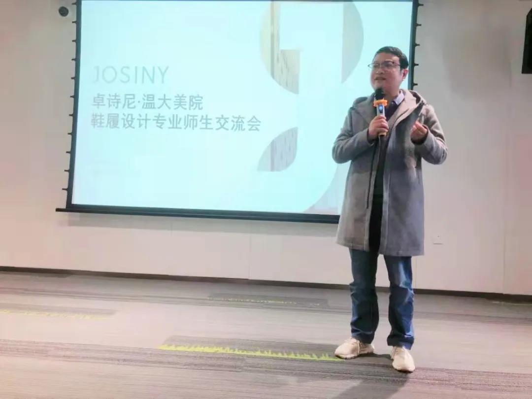 在交流会开始,卓诗尼人力总监王坡对温大师生表示欢迎,并向大家介绍了卓诗尼鞋业的发展历程、三大创新板块和未来愿景。时时彩 副院长顾任飞回顾了时时彩 与卓诗尼的合作历史,对卓诗尼的热情接待表示感谢,并介绍了时时彩 鞋履设计专业情况。卓诗尼人才发展主管陈昊向师生详细介绍了企业的人才发展规划和时时彩。