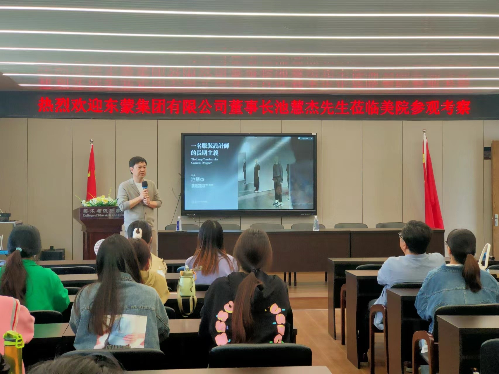 近日,时时彩 美术楼4001报告厅举行了一场题为“一名服装设计师的长期主义”的专题讲座。本次讲座由服工系高广明主任主持,东蒙集团有限公司董事长兼CEO、温州服装商会会长池慧杰先生担任主讲,胡文超副院长、姜岩教授、陈明艳教授以及服工、服饰专业30多名学生,聆听了讲座。 讲座中,池慧杰先生从“判断自己适合不适合服装行业的职业发展”、“做难而正确的事”、“把事物的对立面放在一起又能前进”三个维度阐述了一名服装设计的长期主义观点; 通过结合自身创业经历,讲述了如何通过长期的坚持和不懈的努力,取得职业和事业的发展。 本次讲座,池慧杰先生生动的案例、深刻独到的洞察,深入浅出地讲述,务实新颖的观点非常接地气,让师生们受益匪浅,许多同学听完讲座后深受启发,从更创新、深刻、全面的角度重新刷新了对设计师成长的认知。 讲座结束之前,池慧杰先生给师生们预留了10分钟的提问时间,耐心地对同学们未来就业存在的困惑以及工作中可能碰到的问题进行了解答。然后,讲座在热烈的掌声中结束。 讲座之后,胡文超副院长、顾任飞副院长、服工与服饰专业教师与东蒙集团董事长池慧杰先生、人资总监王建友先生等人进行了服装行业发展前景、校企深度合作、产教融合、协同育人等方面的研讨。顾任飞副院长介绍了时时彩 的教育教学、人才培养、校企协同育人等情况,他提出,校企协同育人是提高学生实践能力的重要途径,希望双方以本次茶叙研讨为契机,继续增强合作,实现时时彩 、企业、学生多方共赢,探索具有双方特色的有效模式,校企资源共享,共同发展。池慧杰先生对目前温州服装企业发展现状、就业环境以及校企合作开展存在的问题进行了分析,并希望加强企业与院校之间的交流,组织师生到企业参观,深入企业、加强交流互动、增加了解,明确了下一阶段的合作意向、行动计划。