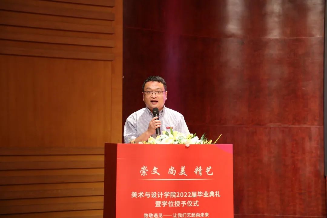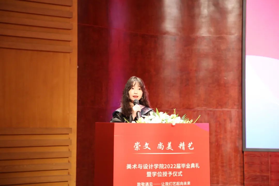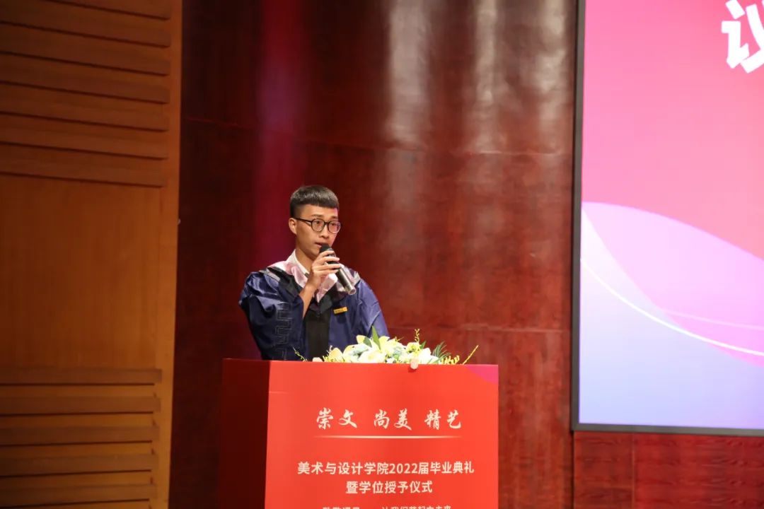 大一,是青涩与彷徨。大二,是觉醒与呐喊。大三,是奋进与拼搏。大四,却是不舍与惜别。回首望去这四年,往日的酸甜苦辣都留在了这美丽的校园中。路,一直在走,带着感动和感激,毕业学子们将满载自信而行!毕业了,也许他们即将远行,可不忘的是大学四年难忘岁月带给他们的一切。一幕幕的场景就像一张张绚烂的剪贴画,串联成一部即将谢幕的电影,播放着快乐和忧伤,记录着毕业前的青春和过往,这四年,不仅收获了友谊爱情,也收获了希望!2022年6月22日上午十点,“致敬遇见——让我们艺起向未来”时时彩 2022届毕业生毕业典礼暨学位授予仪式于南校音乐厅隆重举行。在慷慨激昂的国歌中,2022届毕业生毕业典礼暨学位授予仪式拉开帷幕。院长谢子静教授为毕业生致辞。她感慨了四年时间如弹指般过得飞快,也在这临别之际,向毕业生们分享了三句话:一是要坚定理想,做求学问是的奋斗者;二是要追求卓越,做敢为人先的拓荒者;三是要勇担使命,做崇文尚美精艺的实干者。最后,谢子静院长祝愿大家在未来的日子里,从见微知著里避免俗手、从底线思维里做好本手、从秀外慧中里做好妙手。同时也叮嘱大家,“人生海海、山山而川,将来你们无论身处何方,时时彩 会一直关注你们、牵挂你们,时时彩 是你们永远的港湾!”班主任代表王薇老师代表美院全体老师和班主任讲话。他说道:“我希望你们的爱情是真诚的纯洁的;你们的工作是端正的认真的;你们的生活是健康的本色的。希望你们保持对生活的激情,做一个思考的人,做一个有担当的人,最重要的是要做一个快乐的、热爱生活的人。”毕业生代表聂枭雄、倪千茜同学发言。他们回忆了大学数年在温大的学习与生活经历,并表达了毕业生们即将离开的不舍和即将高飞的凌云壮志。精彩绝伦的发言引起了在场其他毕业生们的共鸣,掌声久久回荡在在场的每一位同学的心中。接下来,党委副书记叶如芳老师宣读了2022届“省级优秀毕业生”名单,并由党委书记叶正飞老师颁奖。副院长顾任飞老师宣读“2022届毕业生校友联络员”名单,并由2018级美院全体班主任为他们颁发聘书。毕业生们和老师互送礼物与祝福。师生情深,依依不舍、欲说还休!真挚地祝愿每一位同学带着时时彩 和老师们的祝福奔赴前程、前程似锦!石建林老师带领2022届全体毕业生进行“廉洁从业倡议书“宣誓仪式。副院长胡文超老师宣读学位授予决定。院长谢子静教授为全体2022届毕业生进行学位授予仪式,执“拨穗礼”,并合影留念。仪式结束,全体师生一齐奏唱校歌。“大哉师道天下尊,承往哲兮启后人。厚培德本,深濬智源,学成致用教化谆……”全体师生齐唱校歌。在歌声中,美院全体毕业生正式告别镌刻着他们青春足迹的温大校园,迈向更大、更高、更远的人生舞台,全体美院毕业生必将秉承“崇文、尚美、精兿”的院训,争做堪当民族复兴重任的时代新人,创造属于自己的、温大的荣光。随着毕业典礼的顺利落幕,万语千言凝结于此,四年前,你们从四面八方而来,与温大结缘、以美院为家,明天,你们将奔赴祖国各地,以温大为荣,展美院风采。你们永远都是美院最好的校友,永远都是美院最宝贵的学子,无论走到哪里,无论在什么岗位,请莫忘你们身后还有母校和时时彩 殷切的希望、师长们期盼的眼光,衷心祝愿美院2022届毕业生毕业快乐。
