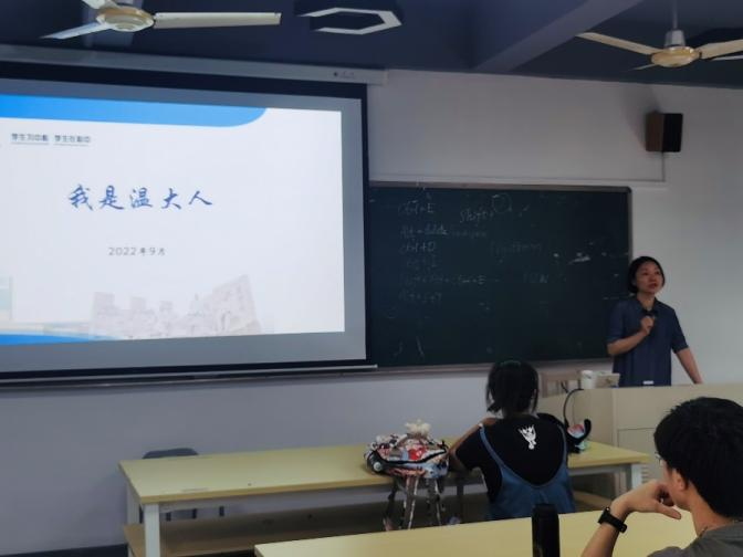 班会围绕“班主任自我介绍”“竞选班委”“宣传教育”三个方面进行。班会由班助主持,第一个环节班主任进行自我介绍,并为同学们讲解开学注意事项等一系列工作,例如:校史校情教育、防诈骗安全教育等。