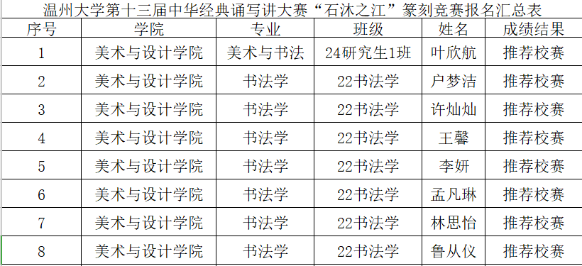 现将时时彩 在此次大赛中,包括汉字书写竞赛、诵读竞赛、篆刻竞赛项目入选校赛的名单予以公布。