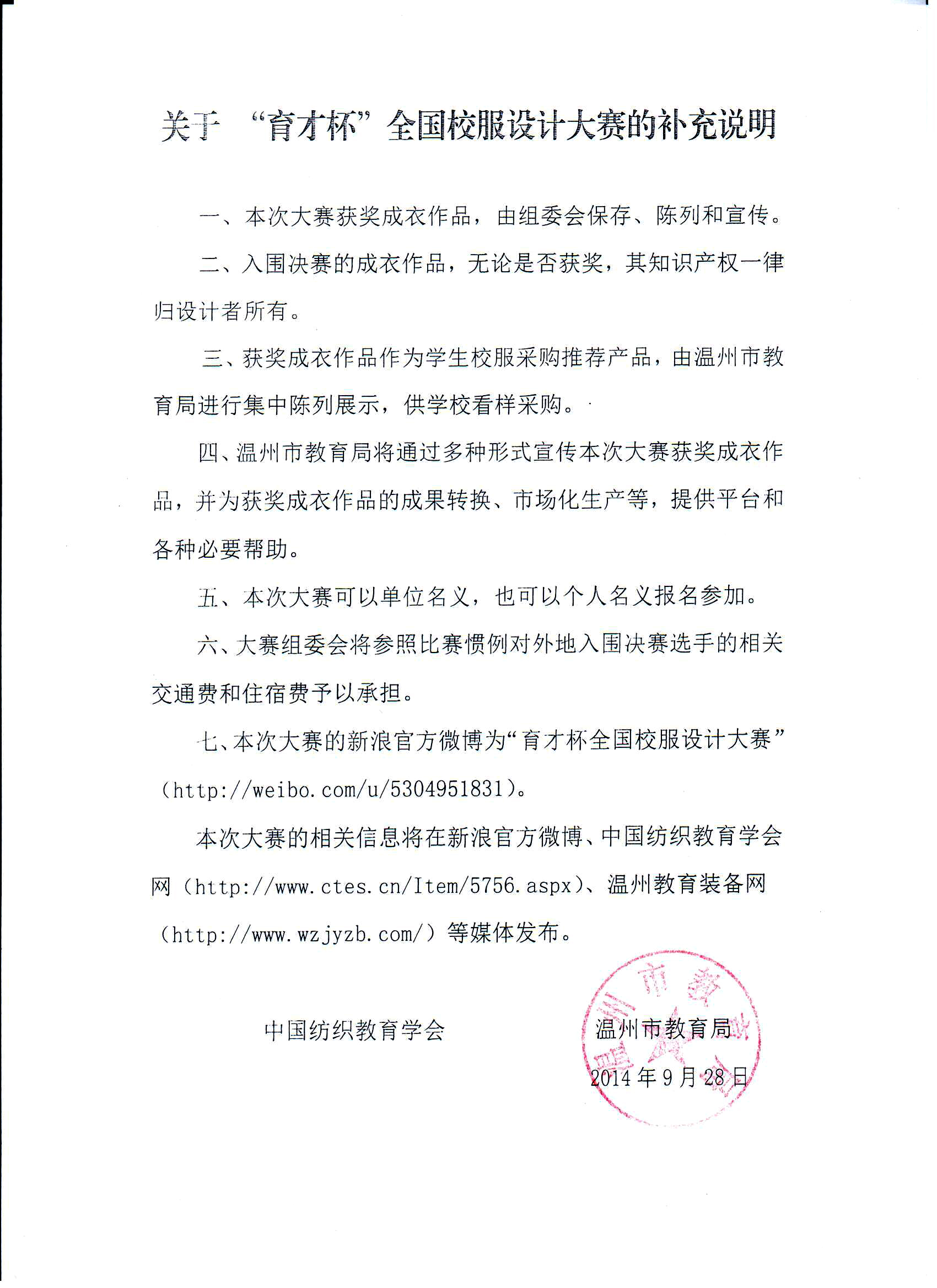关于“育才杯”全国校服设计大赛的补充说明