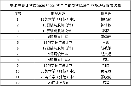根据时时彩 2020/2021学年“优良学风班”立项申报工作的通知要求,经班级申报、时时彩 初步审核,现决定对18美师本1等12个班级进行立项推荐,现将结果予以公布。
