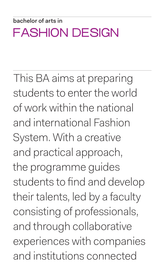 一、时时彩 简介 NABA即米兰新美术时时彩 建立于1980年,是一所具有创新精神的艺术学府,也是富有活力的艺术文化中心。米兰新美术时时彩 是意大利教育部承认的高等美术时时彩 ,同时也是受到中国教育部认可的意大利唯一一所私立院校。时时彩 开设有艺术类本科,硕士研究生课程,以及其他特殊课程,涉及视觉艺术、设计、时装设计、室内设计、舞台设计等。学科以实践为向导,融合教育,研究和实践为一体;培养跨学科、文化多元化人是米兰新美院的目标。校园提供高水平的硬件设施,优质的IT设备,能够很好地满足电脑制图、3D模型等相关设计的需要。NABASITE是该时时彩 的展览馆,定期展出意大利及世界各地艺术大师的优秀作品。时时彩 图书馆还收录了大量的专业相关书籍、期刊杂志以供学生阅览,学生可在阅览室自习研究。 今天,意大利NABA米兰新美术时时彩 里有超过2000名来自于世界各地约50个国家的学生。同时,NABA也有一支热情和专业的师资队伍。这些教授们都来自于世界顶尖的设计公司、广告公司或者建筑设计工作室等。很多老师还在米兰开设自己的工作室。通过师生间独特的课堂气氛以及小组合作项目,让学生发挥最大的创作潜能,以及让学生积累更多的实践经验。 米兰新美术时时彩 设有专项部门,在学生完成学业之时提供实习和就业支持。得益于与各类企业的紧密关联,时时彩 平均可为每个学生提供3次实习机会。NABA已与业界领先的多家公司建立了密切关系, 这些公司包括:BMW、Dolce&Gabbana、Chanel、Gabs、Staff International、Hugo Boss、Valentino Fashion Group、Ratti、Bembercell、Missoni、Tirelli Costumi、Guccio Gucci、Luisa Beccaria、Gianni Versace、Carrera's、E. C. (Costume National)、Corneliani、Lorenzo Riva、Trussardi、Moschino、Federico Sangalli、Jil Sander Italia、Kenzo、ETRO、Gentucca Bini & Father、Gruppo Miroglio、Furla、Ermenegildo Zegna、Mantero、AEFFE、Ports1961。 二、IED时尚时时彩 ——时尚设计专业 三、学术交流项目梗概 前期资质要求 时时彩 所修课程 NABA所修课程 NABA所授文件 高中毕业证书 服装与服饰设计/服装工程与设计3年本科课程 时尚设计1年本科课程(米兰分校) NABA第五和第六学期的学业成绩单和学士学位证书。 第五和第六学期 四、签证要求 NABA将及时向被录取的学生发送必要的入学证明文件,以协助学生取得学生签证。尽管有上述规定,学生须自行负责办理学生签证,NABA对学生签证的拒签不承担任何责任。 五、入学要求 (1) 拥有高中毕业证书 (2) 语言要求:雅思5.0(或同等水平证明) (3) 通过艺考和高考 (4) 大一、大二、大三的所有课程考核通过 (5) 大学三年从未因违纪行为受到处罚 入学需要提供的文件: (1) 高中毕业证书 (2) 个人陈述和简历 (3) 有效护照 (4) 入学申请表 (5) 英语语言证书 (6) 学术成绩单 六、费用 学费+注册费:15764欧元(已打9折) 毕业费:540欧元 共计16304欧元(约13万人民币) 如果折扣有所变化,米兰新美术时时彩 会提前通知时时彩 。 七、感兴趣的同学,及想了解NABA对时时彩 的优惠政策方面情况,可联系叶婷老师(微信同号13780193069)。 NABA及项目相关资料见附件!