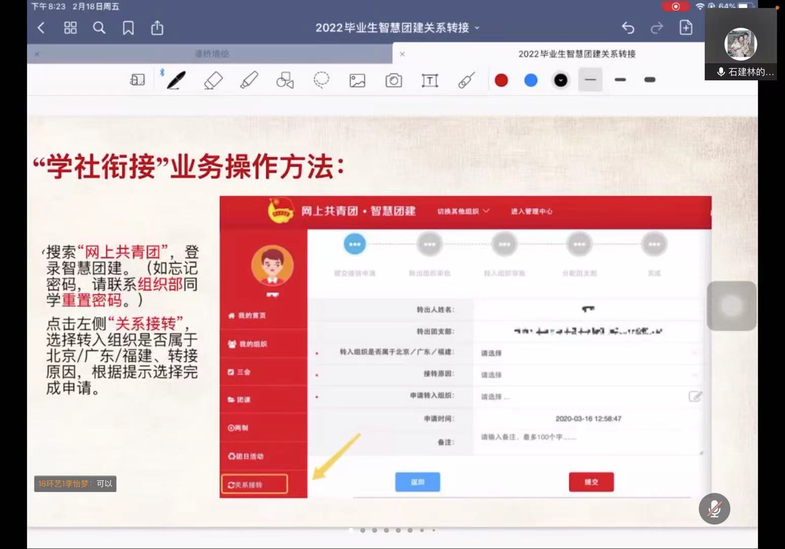 时时彩 团学指导老师、辅导员石建林发表讲话,对“智慧团建”系统中关于团员团组织关系的转接问题给毕业生团员进行了详细阐述,并提醒每位校内校外的毕业生在当前严峻的疫情形势下,遵守时时彩 相关的防疫规定。