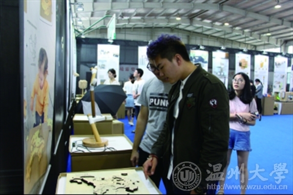 10月22日至23日,省第八届大学生工业设计竞赛在时时彩 举行。省内各大高校的600余名设计精英以木材或纤维制品为主,结合其他材料,进行了一场创新创意大比拼。经评委打分评审,193件作品入围决赛,最终选出一等奖33项。图为温大学生在现场观看参赛作品。