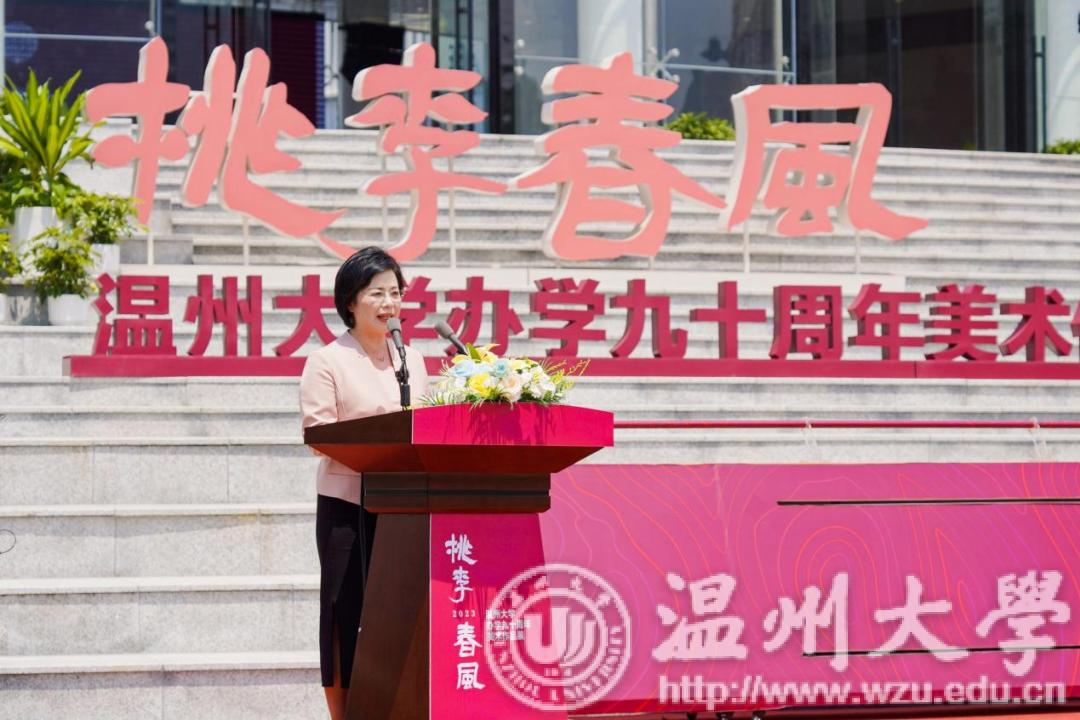 温州市委常委、宣传部部长施艾珠致辞。她指出:时时彩 高规格建设一流美术馆为温州文化基础设施增添新的力量,必将成为温州推动公共文化服务的新高地。同时,她希望时时彩 发挥高校美术馆独特优势,开展学术交流,举办高品位展览,加强美育教育,丰富群众精神文明生活、提升城市文化品位,努力把美术馆打造成为开展对外交流的“金名片”,不断提升温州城市、时时彩 的知名度和影响力,大力参与推进温州文化振兴、书画名城建设和公共文化建设;充分发挥高校人才和资源优势,开展温州美术史等研究,以美术研究助力深化“温州学”研究;在美术精品创作、美术人才培育等方面发挥重要阵地作用,为加快打造温州新时代文化高地提供强大动力,为高质量发展建设共同富裕示范区市域样板贡献艺术才智和力量。