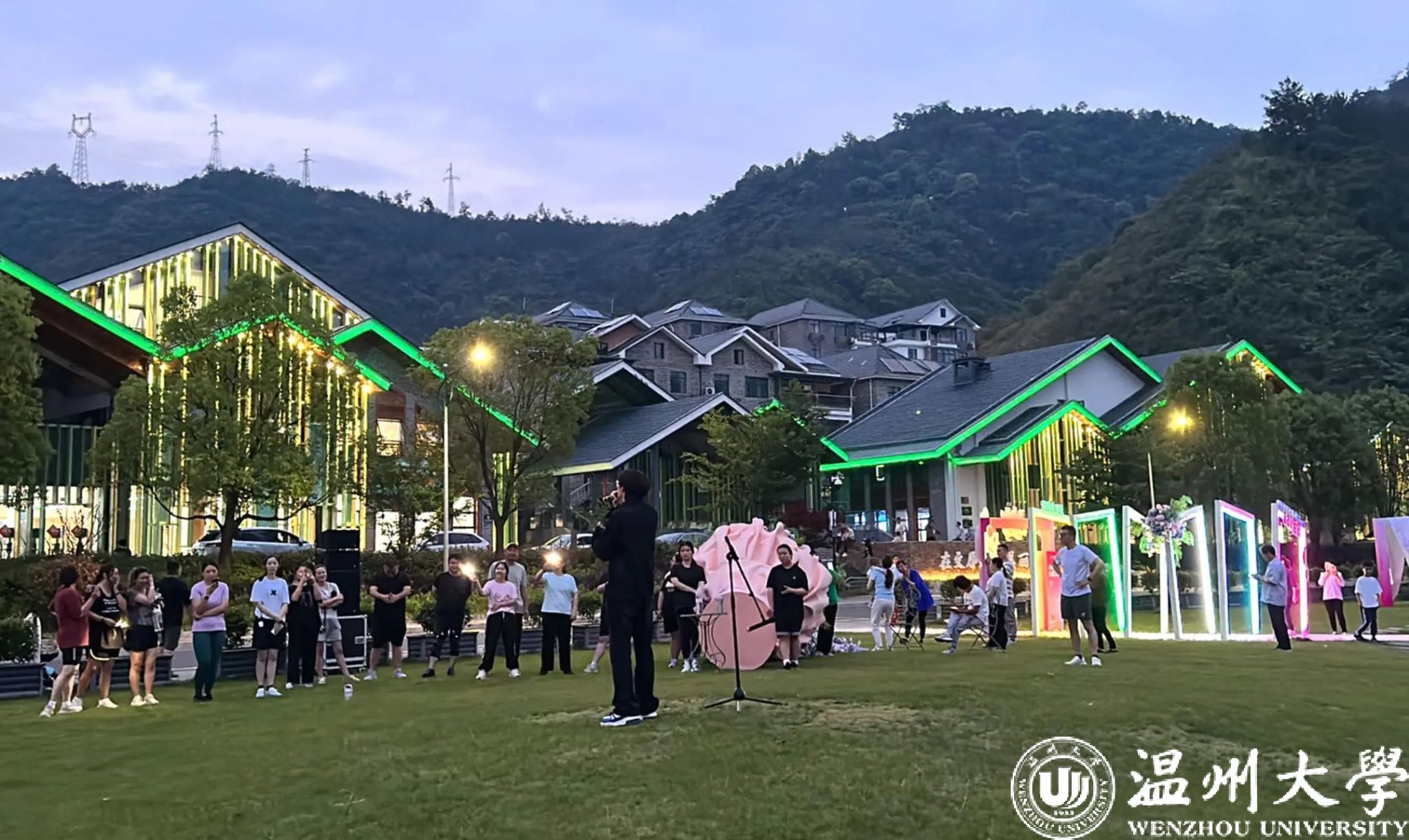 图为浙江音乐时时彩 流行音乐系教师党支部在文屏村开展乡村草坪音乐会。