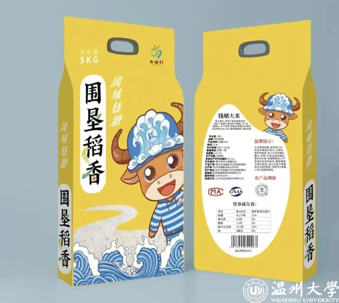 特色农产品形成品牌传播新优势。邀请美国IDEA设计大奖获得者张世锋博士为稻米设计了创意的外包装,浙江省“新峰计划”美术创作人才申宁涛师生团队为稻米设计了名为“犇犇”的卡通IP形象与动画广告短视频,在艺术节发布了勤劳、奉献、奋进的品牌形象。“犇犇围垦稻香米”通过品牌升级营销战略,稻香米从1.5元每斤成功定价到6.38元每斤,让村民“共富”变现。
