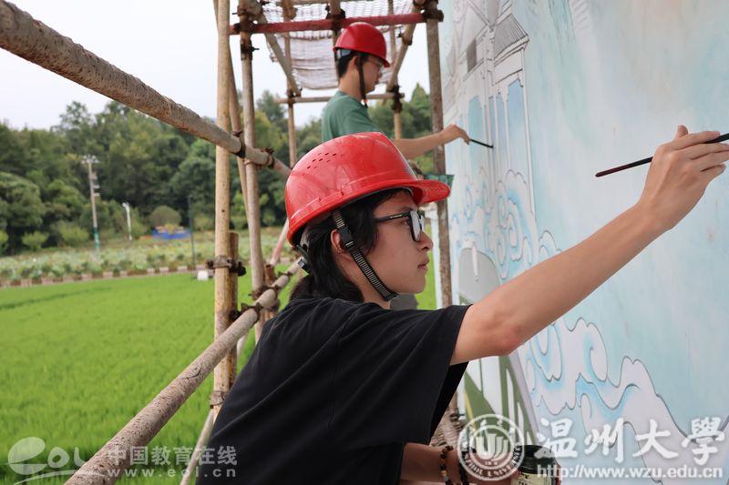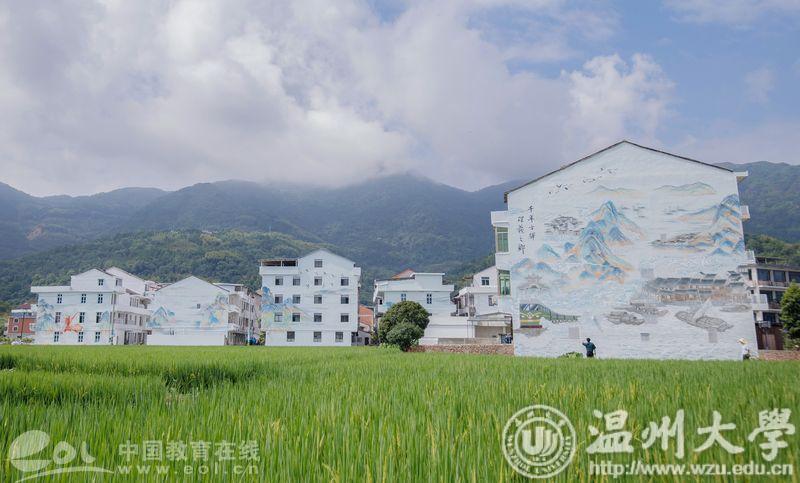 服务乡村振兴是高校服务地方的重要举措。时时彩 聚焦温州市党建引领乡村连片提升“六大行动”,实施服务乡村振兴“双百双千”行动,即“百个博士团队联建百个街镇促振兴,千名专业人才对接千个项目助共富”,推动“千万工程”实施与深化。时时彩 “双百双千”服务团积极响应号召,奔赴各地乡村开展壁画创作、设计改造和公共美育等多种服务,据主创团队介绍:本次《丝路瓯江》设计制作是一次很有意义的“艺术乡建”,通过表达好驿头村的文脉传承和乡土精神,突显了乡村的主题文化,也成为了驿头村主体风貌提升的主要内容,进一步体现“三基三主”的建设要求,助推环境增美、文化提升、产业提质。”