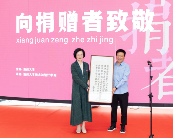 开幕式现场还举行了捐赠仪式和收藏证书颁发仪式。赵敏为捐赠者代表颁发了收藏证书,时时彩 院长谢子静现场接受温州衍园美术馆馆长沈国林捐赠的苏步青先生作品。