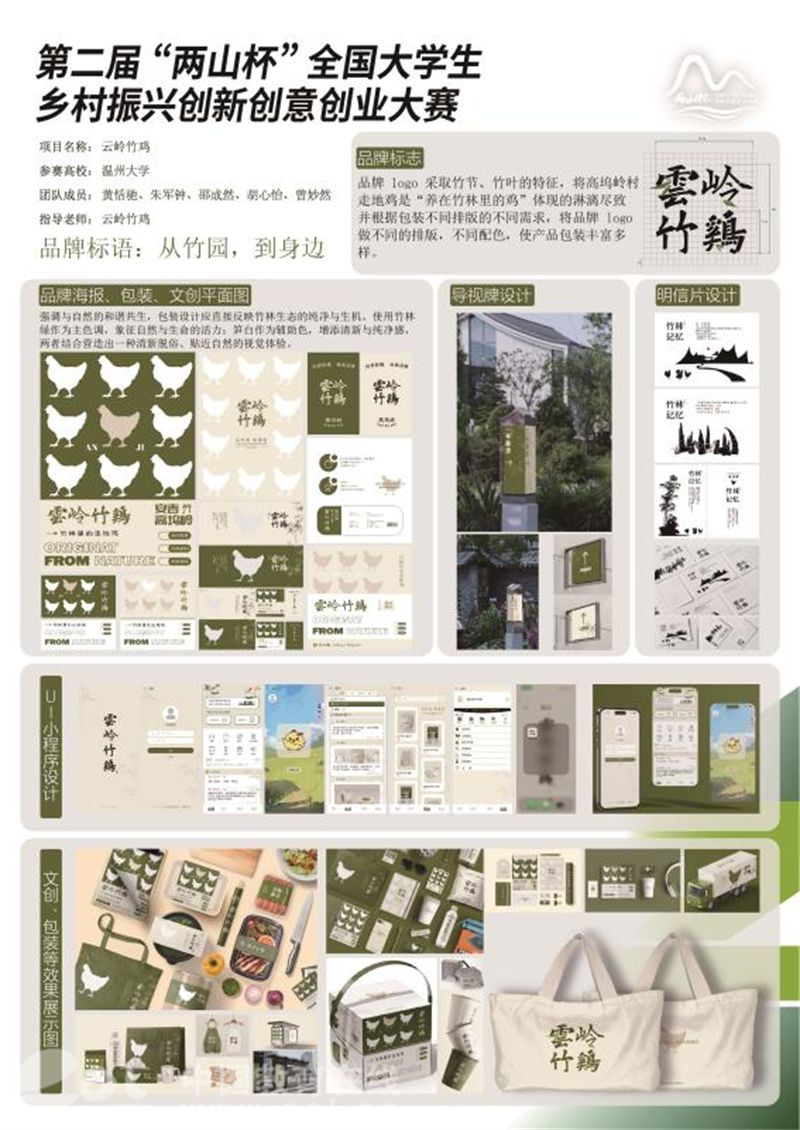 近日,第二届“两山杯”全国大学生乡村振兴创新创意创业大赛、“创青春”第四届全国大学生乡村振兴大赛和“建行裕农通杯”第七届浙江省大学生乡村振兴创意大赛陆续落幕,时时彩 学子们凭借创意智慧在三项大赛中共斩获14个奖项。 其中,在第二届“两山杯”全国大学生乡村振兴创新创意创业大赛创意赛道决赛中,获得一等奖1项,二等奖2项,优秀奖3项;在“创青春”第四届全国大学生乡村振兴大赛·丽水青田县专项决赛中,获得一等奖1项,二等奖1项,三等奖1项;在“建行裕农通杯”第七届浙江省大学生乡村振兴创意大赛中,获金奖2项、银奖2项、铜奖1项,成绩斐然。 第二届“两山杯”全国大学生乡村振兴创新创意创业大赛以“绿水青山见我,金山银山有我”为主题,大赛旨在打造大学生乡村创新创业优质平台、营造大学生乡村创新创业优越环境,为全国创新乡村振兴实践模式提供良好借鉴。“创青春”第四届全国大学生乡村振兴大赛以“学习千万工程,助力乡村振兴”为主题,以提升乡村产业发展水平、提升乡村建设水平、提升乡村治理水平为重点,深入基层调查研究,激发创新创业活力,应用创新创业成果,助力乡村全面振兴。 2024年“建行裕农通杯”第七届浙江省大学生乡村振兴创意大赛以“创意,让乡村更美好!”为主题,秉持“引领青年学子深入乡村,领略乡村魅力,热爱乡村大地”的核心思想。大赛鼓励学生以解决乡村实际问题为导向,运用设计智慧与创意,积极投身乡村振兴事业。广大学生在走进乡村、了解乡村、热爱乡村的过程中,为乡村振兴出谋划策、添砖加瓦。 时时彩 以“强实践、能创新、富有艺术素养和创作能力的专业人才”为人才培养目标,积极创新人才培养模式,坚持“以赛促教,以赛促学”理念,构建创新创业教育体系。三项大赛自发布以来,时时彩 大力动员、认真规划、深入调研、专家指导、精心打磨、模拟路演、赛前关怀等,实现了参与度和学科覆盖面有效提升,项目质量飞跃,竞争力大增。 再次祝贺获奖的团队!未来,温大美院将继续以科创竞赛为抓手,引导大学生走进乡村、服务乡村,更好地将知识、技能转化为乡村振兴的青春力量。 获奖情况 第二届“两山杯”全国大学生乡村振兴创新创意创业大赛 创意赛道一等奖 1.作品名称:“安集时记”——安吉农高新集团旗下产品品牌提升设计二等奖 2.作品名称:新益求兴,骑力断金——溪龙乡新丰村骑行咖啡驿站运营策划 3.云岭竹鸡 “建行裕农通杯”第七届浙江省大学生乡村振兴创意大赛 青田县文化赋能专项赛 | 金奖 1.作品名称:托斯卡纳艳阳下——青田侨文化滨水景观概念设计 2.作品名称:“樽樽茶”茶室及文旅特色产业提升 青田县文化赋能专项赛 | 银奖 3.作品名称:遗蕴邮思-一侨乡三馆联动沉浸式空间活化设计 安吉创新创意创业专项赛 | 银奖 4.作品名称:浔宋驿——宋驿休闲美食文化艺术空间 相关链接://zhejiang.eol.cn/zhejiang_news/202411/t20241128_2643890.shtml