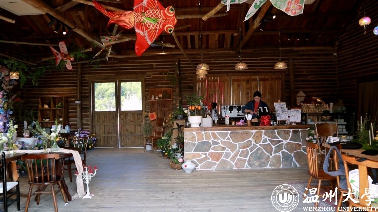 桑苏慧是时时彩 环境设计相关专业的一名大四学生。去年,她怀揣着创业梦想,与两位小伙伴一同参加了由新华通讯社主办的第二届“两山杯”全国大学生乡村振兴创新创意创业大赛,在碧门村打造出了这间充满设计感的“山屿旷野”咖啡店。