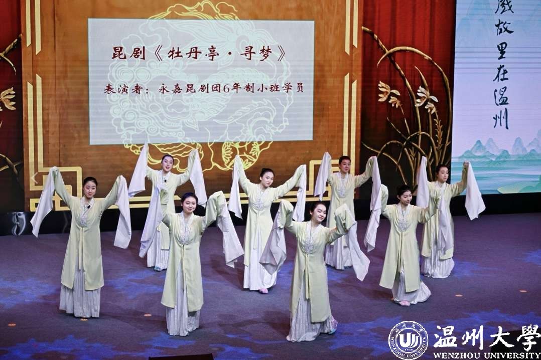 5月9日,“戏从温州来”2025南戏经典文化周分享会在浙江大学举行。分享会现场公布了温州新杂剧《问南戏》、跨界融合剧《寻音·南戏》、纪录片《戏从温州来》、专著《琵琶记-南戏文献全编》以及美术展《宋韵南戏-中国画创作研究展》等五个标志性项目。 分享会在歌曲表演《戏从温州来》中拉开帷幕,瓯剧、越剧、永昆等非遗剧种演员以经典南戏人物造型亮相。平阳木偶剧团现场展示国家级非遗“平阳木偶戏”。机器人Nancy在台上随中国戏剧梅花奖得主、温州市戏剧家协会主席方汝将共唱南戏。浙江艺术职业时时彩 戏曲时时彩 永昆小子班学员演出《牡丹亭·寻梦》选段,展现跨越800年的永昆魅力。 “永昆从仅能在各地庙台流动排演,到现在拥有4000多平方米的现代化剧场,从几个人到几十人,还有一批新生代演员即将加入,‘戏从温州来’也让永昆走出温州,走向世界。作为老一辈永昆人,我激动又欣慰!”85岁的永昆艺术家林媚媚在现场激动地说。温州永昆是当代南戏研究的活化石,分享会现场回顾了永昆的保护和传承历程。 据了解,为推进永昆保护与传承,去年7月1日,温州市出台实施《温州市永嘉昆曲保护条例》。目前,温州市正推进《温州大典》编纂工程。活动现场,浙江大学图书馆向《温州大典》编纂委员会提供了多种古籍底本,并颁发收藏证书。温州市向浙江大学捐赠《永嘉丛书》《敬乡楼丛书》《墨香簃丛编 惜砚楼丛刊》《琵琶记》《神器谱》等文献。 据悉,2023年,总台2023年春节戏曲晚会在温州九山书会录制。为了发挥戏曲春晚溢出效应,2023年8月温州推出“戏从温州来”南戏经典文化周品牌活动,走进长三角、京津冀、粤港澳、川渝等城市群。本次系列活动由浙江省文化广电和旅游厅、浙江省文学艺术界联合会指导,中共温州市委宣传部、温州市文化广电旅游局、温州市文学艺术界联合会主办,将持续至5月14日。 相关链接://app.gmdaily.cn/as/opened/n/d7a05f1d810c44be8582678bbfef9b72