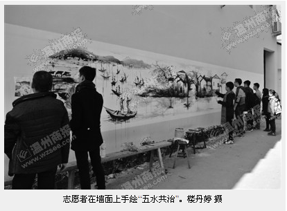 商报讯(通讯员 楼丹婷)前天,时时彩 “艺家人”青年志愿者协会走进瓯海潘桥街道东边村,开展了一场“五水共治”手绘文化活动。80多名志愿者在东边村600余米的粉刷墙面上作画,形象展示了“五水共治”的宣传信息。