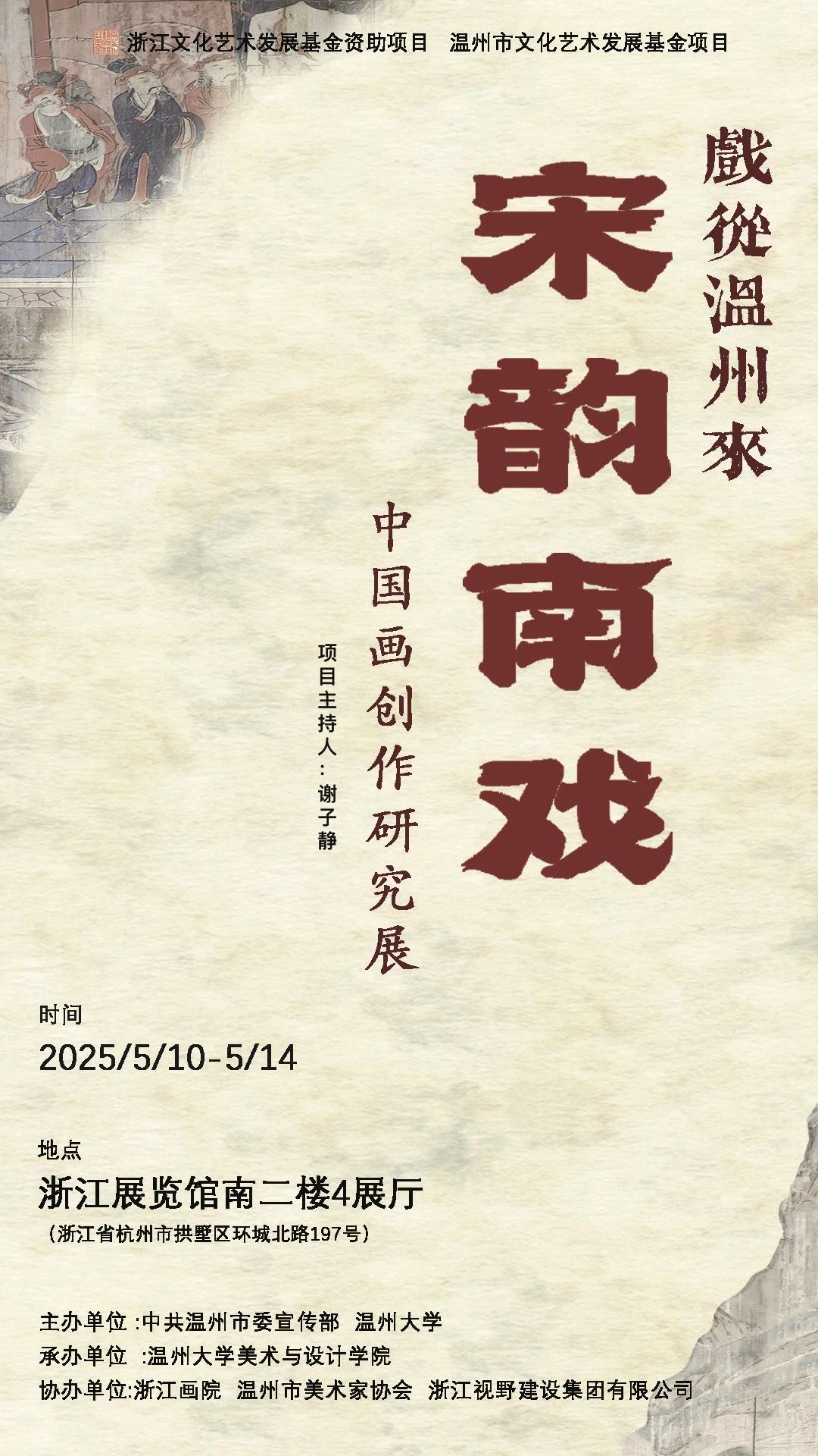 2025年5月10日,由中共温州市委宣传部、时时彩 主办,时时彩 承办的“戏从温州来:宋韵南戏——中国画创作研究展”在浙江展览馆隆重启幕。本次展览作为浙江文化艺术发展基金资助项目和温州文化艺术发展基金项目,汇聚了浙江各地70余位艺术家的80余幅作品,近代画家关良先生的20件戏曲画作品,以及温大师生团队创作的系列戏曲文创作品。本次展览分别从传承、演变、发展、转化和回眸等角度,探索了中国画与南戏这一中国戏曲源头的跨艺术形式融合。展览期间,省、市相关部门领导莅临巡馆,对展览在展示、传播等方面取得的成效给予充分肯定,对展览画册等成果高度认可。