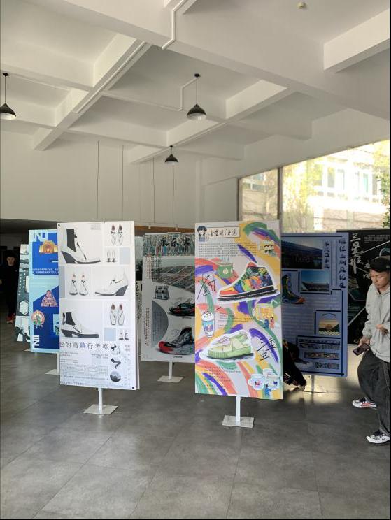 2020年11月9号早上8点20分,由祝忠良老师指导的17服设(鞋履与饰品设计)班《社会实践(艺术采风)》作品展览在时时彩 2B一楼展厅展出。展出时间为11月9日至17日。由于疫情影响,本次艺术采风经时时彩 审批后,少部分同学由时时彩 老师带队出行,大部分同学则采用自行就近选择考察地出行的方式同时开展。正因如此,本次采风考察显得格外有别于以往,考察地点有乌镇、西安、上海、四川等,学生们通过为期一周至三周的艺术考察感受到了当地的艺术气息、文化底蕴。本次展览以展板形式呈现,展示内容主要由同学们在艺术采风过程中收集的当地民胜古迹图片为主,结合当地艺术相关的传统纹样、色彩等民俗文化资料,以图文结合的形式制成。经教师指导,同学们在大量收集考察资料的基础上,进行提炼设计元素并做深入研究,运用于鞋款、包款饰品等设计。
