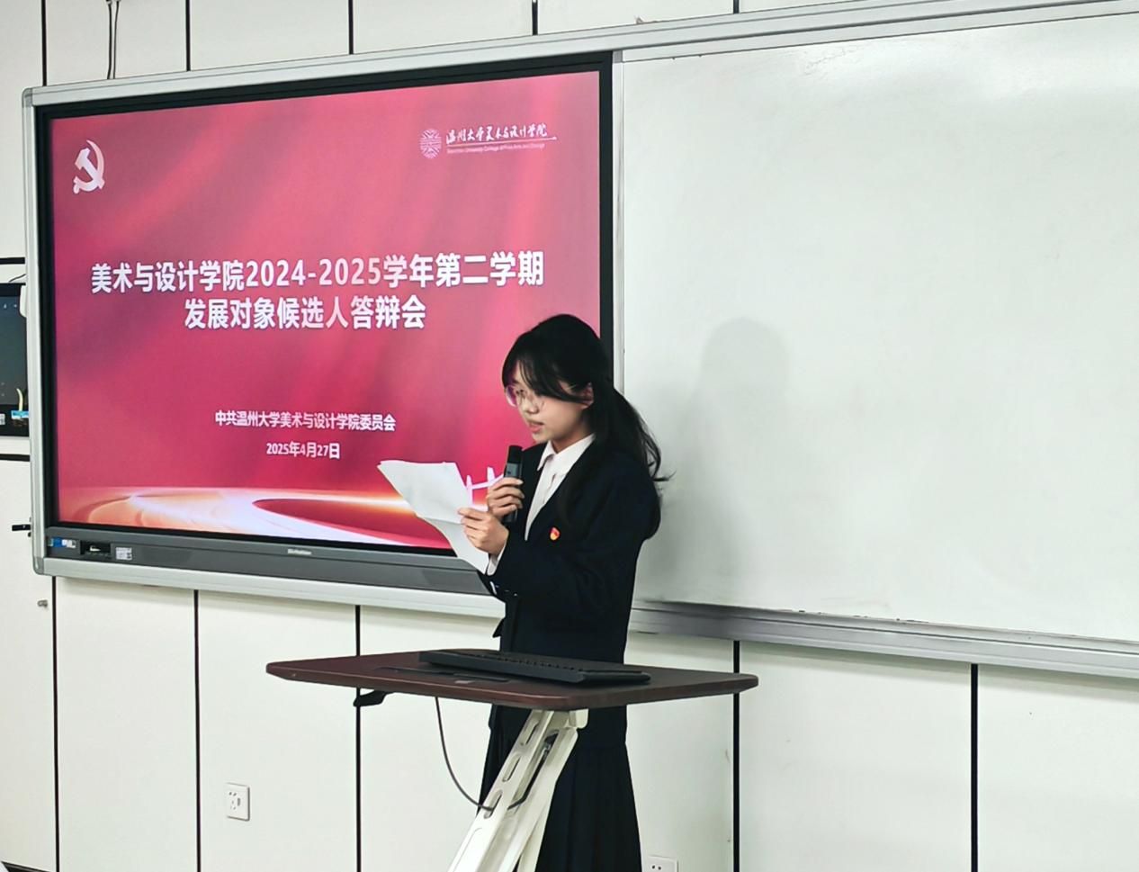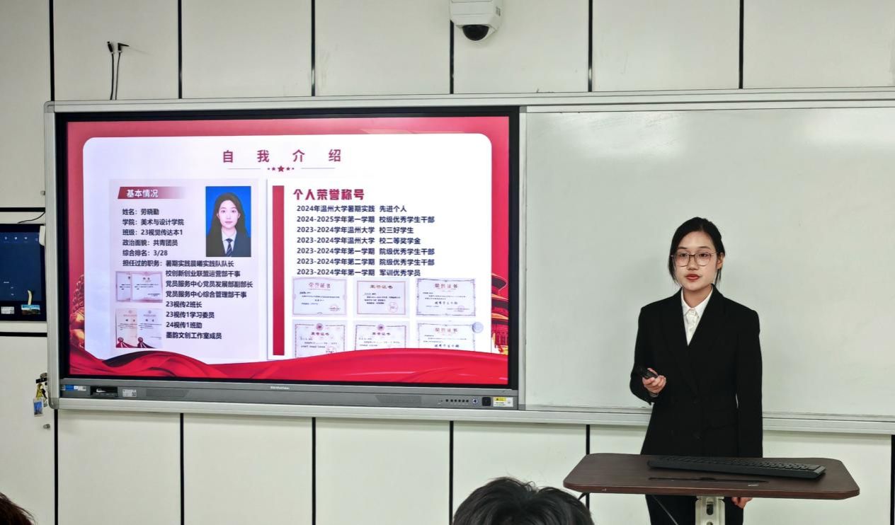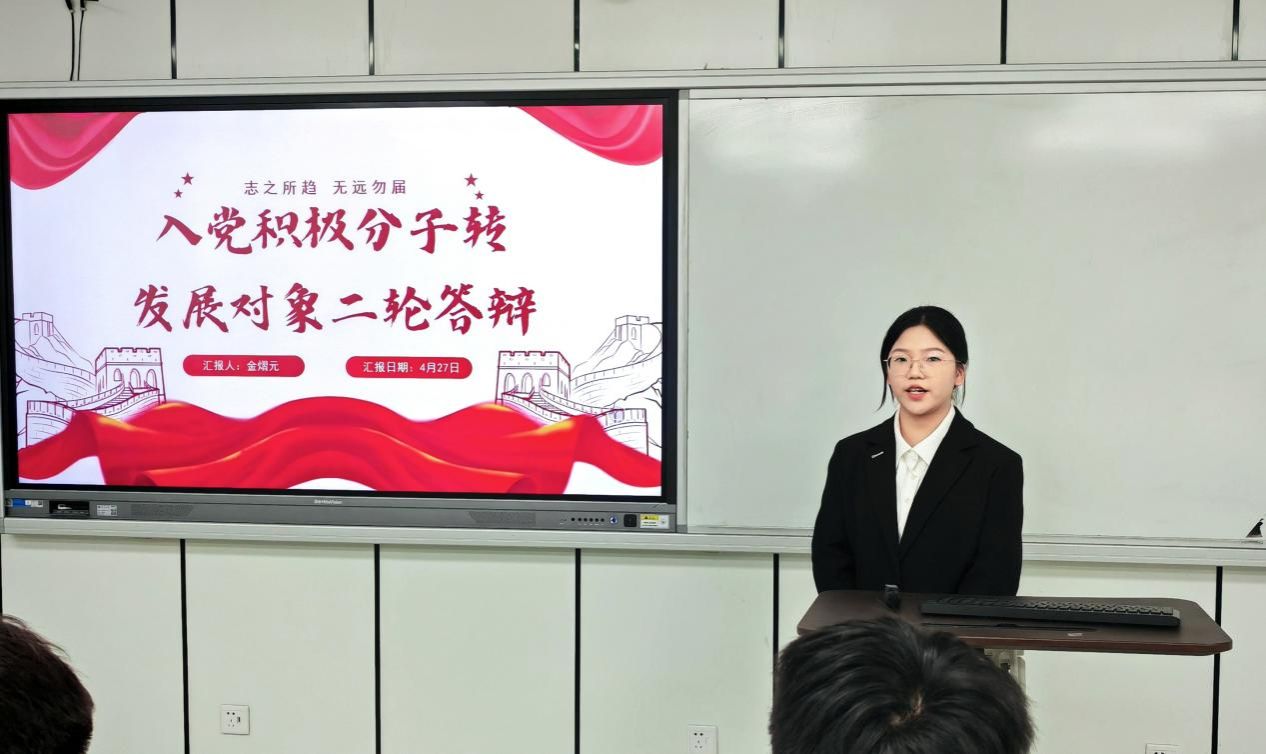 为扎实推进学生党支部建设,提高学生党员素质和服务意识,严格把控党员发展关口,吸纳理论知识储备丰富、党性修养良好的同学向党组织靠拢。2025年4月27日下午,时时彩 “学生党支部发展对象候选人答辩会”于美术楼2B3001教室顺利举行。出席此次答辩会的有时时彩 学工办科长杨永利老师、党建指导老师陈嘉怡老师、辅导员石建林老师、刘伟金老师以及全体学生党员。会议开始,主持人叶欣雨同志宣布本次答辩会的议程和相关要求。本次答辩共有30位发展对象候选人。候选人依次通过PPT进行个人陈述,主要汇报入党动机、学习工作、志愿服务等方面情况以及自身存在的不足与未来展望等。评审通过对发展对象候选人的党章理论知识考核成绩、量化考核和现场答辩汇报等方面进行全方位考察。时时彩 党建指导老师陈嘉怡对本次答辩会作了总结。陈老师希望各位学生党员时刻铭记自己的初心使命,秉持着“成熟一个,发展一个”的原则,认真对待每一个发展对象。并强调这不仅是对候选人负责,更是对党组织纯洁性和先进性的有力保障,确保为党输送德才兼备的新生力量。会后,集中观看《永远吹冲锋号》第三集《铁规矩硬杠杠》纪录片。陈嘉怡老师领学《时时彩 党员先锋引领“十要”》文件精神,深入解读了党员带头作用、骨干作用和桥梁作用的深刻内涵与重要意义。她指出,学生党员要敢于担当作为、勇于攻坚克难,积极践行“十要”准则,认真落实“五个带头”优良作风,以担当尽责的实际行动践行初心使命,争做温大先锋。本次拟发展对象答辩会,是新时代党的组织路线在基层党组织中的生动实践。这一举措为党员发展工作提供了规范化、制度化的流程。会后的深入贯彻中央八项规定精神学习教育与“党员先锋引领十要”准则的学习更是强化了学生党员的党性修养。希望各位学生党员能坚定信念,化正确思想为实际行动;同时希望各位拟发展对象能始终以一名共产党员的标准严格要求自己,积极向党组织靠拢,争取早日加入中国共产党!图文:沈吟珊 周心妍初审:何唐蔚复审:陈嘉怡终审:刘青松 叶如芳