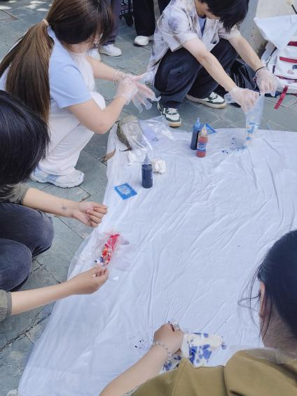 2025年5月14日,时时彩 美术馆风雅艺术团校友之家举办“蓝韵流转,妙手织彩”扎染体验活动,引领同学们感受传统扎染工艺的独特魅力,提升艺术感知与动手能力。