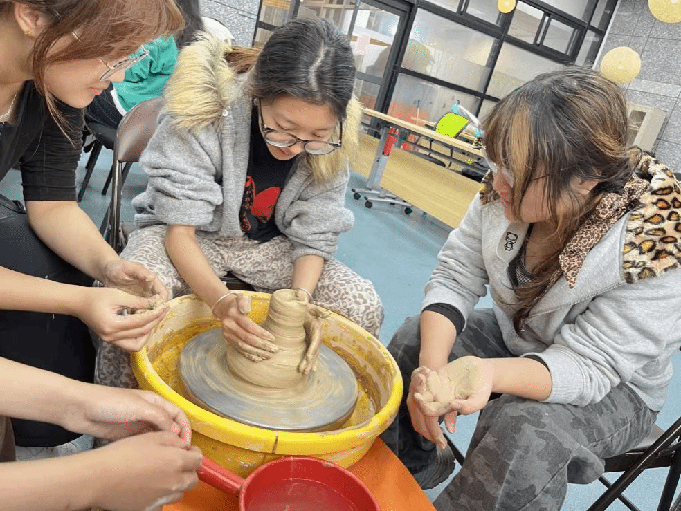揉泥过程中,大家初时动作生涩,陶土屡屡“不驯”,但在反复调整与坚持下,逐渐掌握了力道与节奏,体会到传统工艺对心性的磨砺。拉坯环节更是精彩纷呈:旋转的陶轮上,泥土在双手中逐渐成型,或为杯,或为碗,虽形态初具,却已显露出创造的喜悦与成就感。修坯时,同学们凝神静气,以工具细细打磨,追求分毫之间的精准与完美,深刻领悟到“工匠精神”中对极致的执着与坚守。