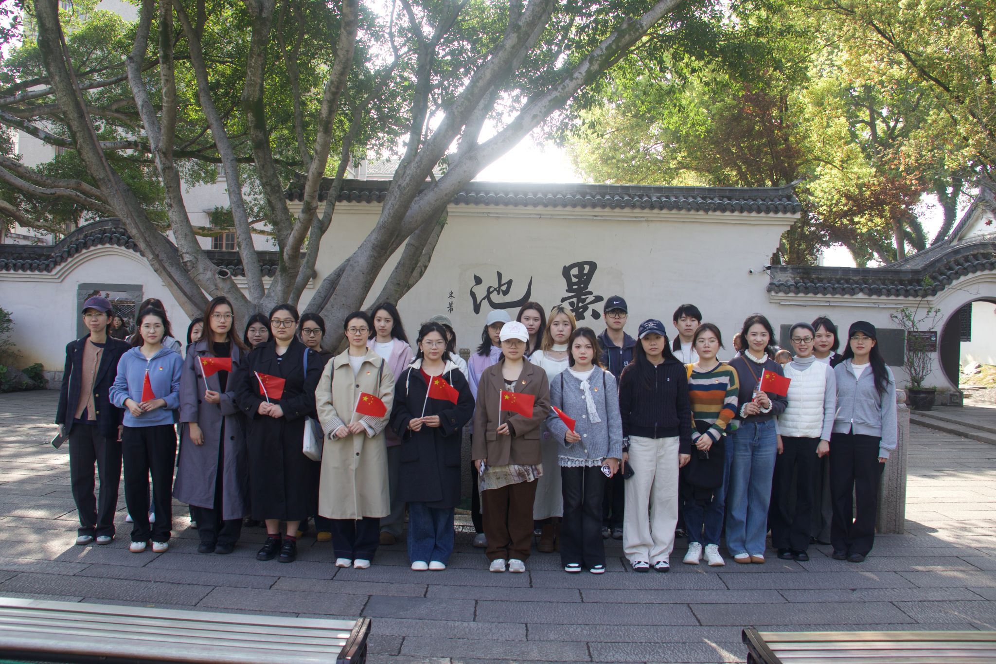 为深入推动党建工作与艺术专业育人深度融合,厚植师生党员文化自信与家国情怀,3月25日,时时彩 组织师生党员,走进温州城区革命历史馆与墨池坊,开展“寻墨池文脉·忆革命初心”主题党日活动。师生党员们在红色足迹中感悟革命精神,在千年文脉里汲取艺术养分。活动第一站,师生党员们走进温州城区革命历史馆,在珍贵的历史图文、影像资料与实物展品中,重温浙南地区波澜壮阔的革命历程。展馆以“思想之光 革命之火”“艰苦斗争 曲折前进”“抗日战争 激流勇进”“全面胜利 和平解放”四大篇章为脉络,完整展现了从1924年中共温州独立支部建立,到1949年浙南全境解放的25载峥嵘岁月,生动讲述了温州革命先辈们为民族独立、人民解放抛头颅、洒热血的英雄事迹。驻足革命文物与历史照片前,党员们聆听故事、触摸历史,深切感受浙南共产党人坚守信仰、无畏奉献的革命初心。大家深知,这厚重的历史是最鲜活的思政课,幸福生活来之不易。作为新时代党员,我们定将传承红色基因,将革命精神融入创作与学习实践。随后,师生党员前往墨池公园探寻千年文脉。墨池公园是温州古城文化地标,因东晋王羲之任永嘉郡守时 “临池作书、洗砚于此” 得名,宋代米芾曾题字留念,是历代文人墨客的艺术圣地。园内古木葱茏、池水澄澈,墨池遗址、古坊建筑与园林景致相融,尽显瓯越文化儒雅底蕴。漫步园中,党员们循着书圣的笔墨足迹,感受中华书法艺术的博大精深,品读温州千年文脉的传承脉络。墨池承载的不仅是书法精髓,更是温州人崇文重艺、坚守初心的精神内核。大家表示,要扎根中华优秀传统文化,从本土文脉中汲取灵感,用设计语言、笔墨丹青讲好温州红色故事,让革命精神与文化底蕴在艺术创作中焕发新活力。此次主题党日活动,将红色革命教育与传统文化研学有机融合,既是一次深刻的党性锤炼,也是一场沉浸式艺术文化实践。活动既让师生党员们在红色洗礼中坚定理想信念、筑牢初心使命,也引导大家深挖本土文化资源,推动党建工作与艺术专业育人同频共振。初审:潘若妍复审:陈嘉怡终审:叶如芳